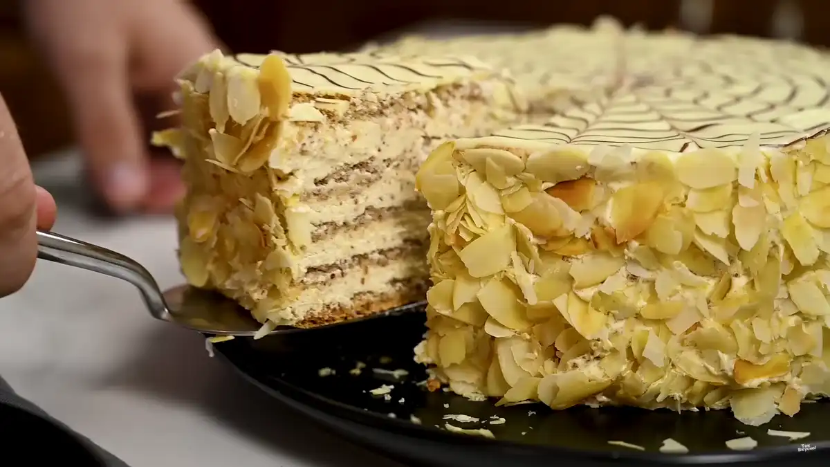 O resultado é um bolo de nozes muito tenro, sem farinha e sem glúten. Os bolos permanecem macios e ligeiramente estaladiços nas bordas, e o creme torna a sobremesa rica e “derretida” em textura – é por isso que muitas pessoas consideram o bolo “Royal” uma das receitas caseiras de férias de maior sucesso.