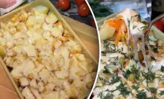 Depois disso, as panquecas com chinka e queijo estão prontas a comer, mas podem ser adicionalmente fritas numa frigideira com manteiga durante 3-4 minutos de cada lado, ou assadas no forno durante 10 minutos. Assim, os produtos ficarão com uma crosta estaladiça apetitosa e o queijo no interior derreterá.