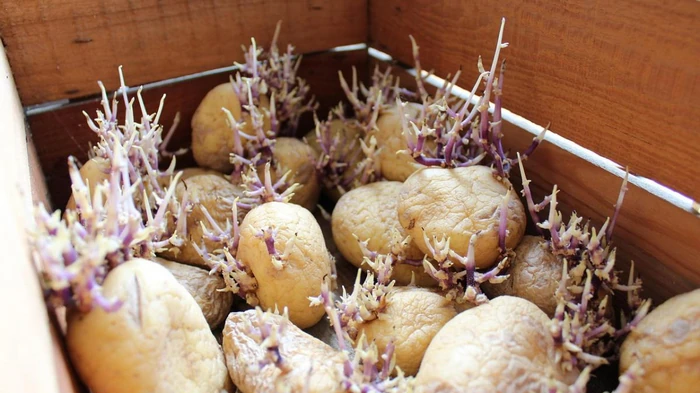 Acrescenta-se que cerca de 60-100 dias após a plantação, as batatas germinadas devem produzir uma nova cultura que já pode ser colhida. Os especialistas aconselham cortar a batata germinada em vários pedaços, de modo a que cada pedaço tenha um rebento.