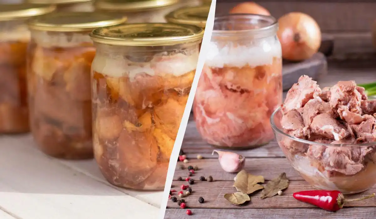Lavar a carne, cortar em pedaços médios e salgar. Espalhe d ou três ervilhas de pimenta e uma folha de louro em frascos limpos. De seguida, colocar a carne bem apertada nos frascos.