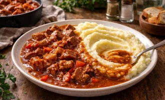 Sirva com ervas aromáticas e natas azedas. Bom apetite!