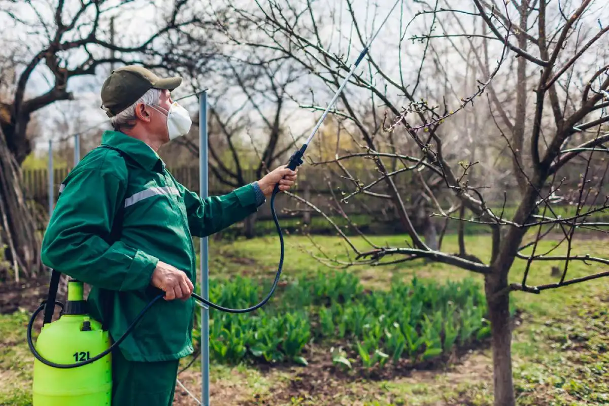 Para proteger as s árvores de fungos e pragas, pulverize-as na primavera.