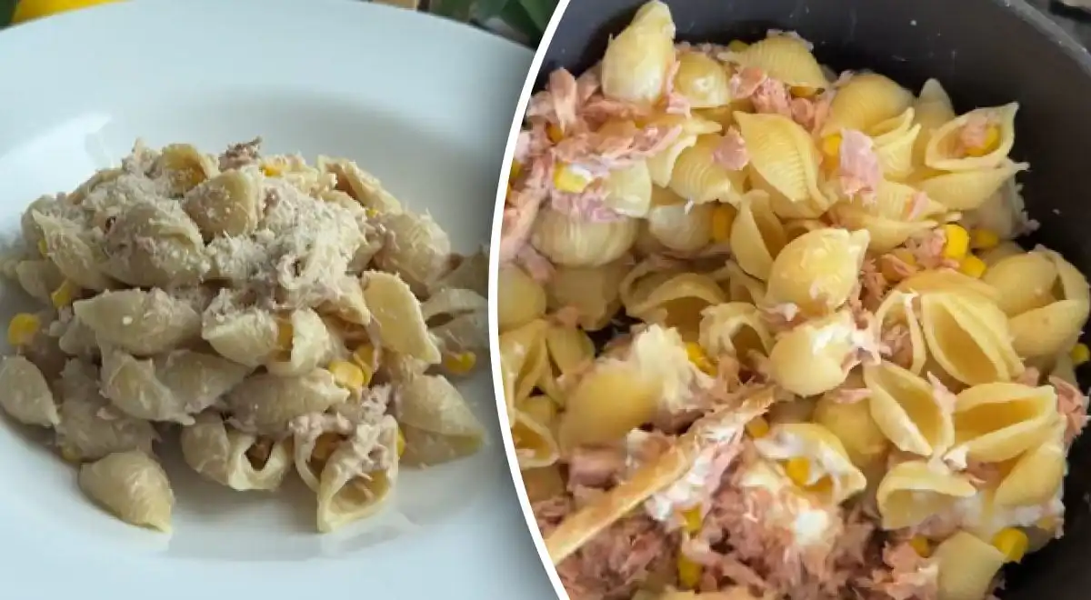 Para um jantar rápido, é necessário começar por cozer a massa em ágcom sal. Qdo estiverem prontas, adicione uma colher de queijo creme, uma lata de atum no seu próprio sumo e milho a gosto.