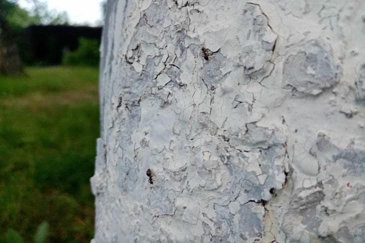 Uma solução especial de cal cria um ecrã refletor e evita que o tronco sobreaqueça perigosamente durante o dia. A cor branca dispersa eficazmente os raios e mantém o equilíbrio da temperatura interna dentro dos limites normais.