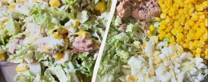 Uma salada refrescante com couve de Pequim jovem resulta sempre bem. Salada de couve à Pequim – uma forma rápida de almoçar / colagem My, foto Instagram Com.