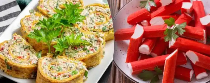 Uma receita de um apetitoso rolo de caranguejo. Link copiado Rolo com palitos de caranguejo – receita / colagem: My, foto: depositphotos.