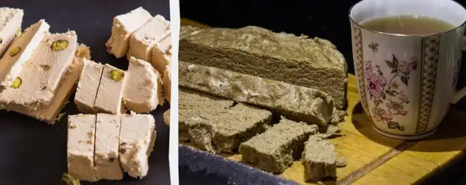 Esta guloseima útil e saborosa é fácil de preparar. A halva doce e quebradiça pode ser feita em casa / collage My, photo pixabay.com Uma das guloseimas mais.