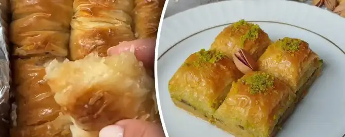 Cinco ingredientes simples que pode encontrar em casa para fazer uma baklava incrivelmente deliciosa. Link copiado Receita de baklava rápida / Colagem